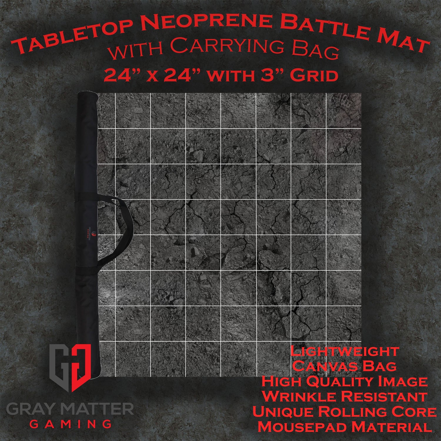 The battle mat itself is light and easy to roll, unroll, and carry while also having fantastic wrinkle resistance. They have great cushion for your games while sticking to all sorts of table surfaces they are put on. If you've used neoprene mats to play before, you'll notice that ours are easier to roll and unroll than the others in the market - while still having the same qualities that make neoprene mats the best in the market.