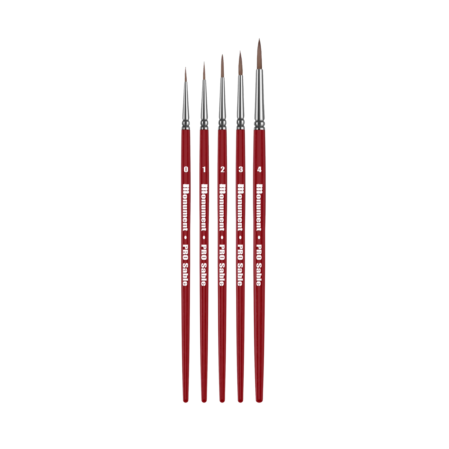 Our PRO Sables are made from the finest Sable and designed with a shape that will load a sizable amount of paint, while delivering perfect control with every stroke. Great “snap” and very fine points to put the finishing details on your models. Great for use with acrylics as well as other thin mediums, PRO Sables will allow you to blend easily and create the finest details at any scale.